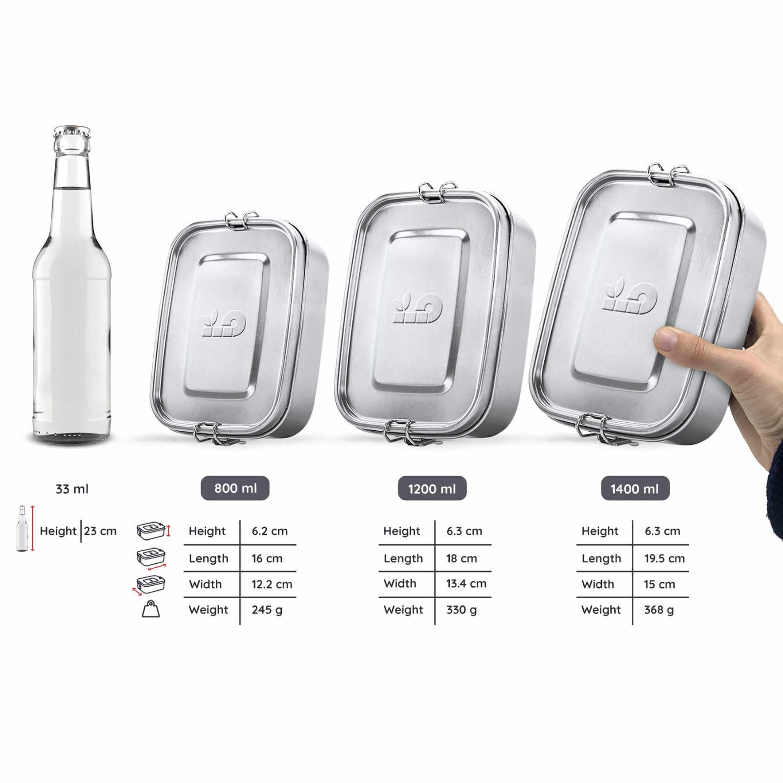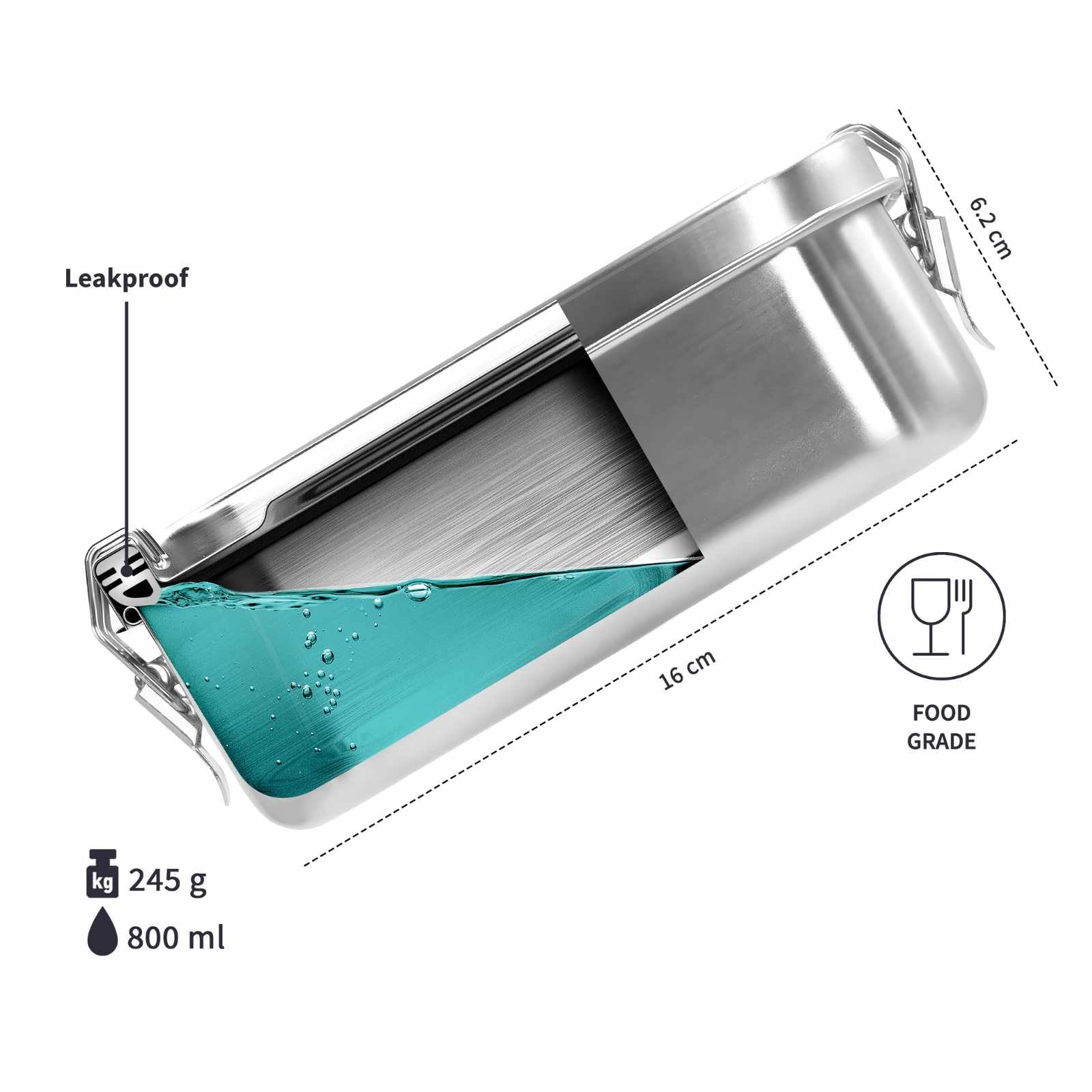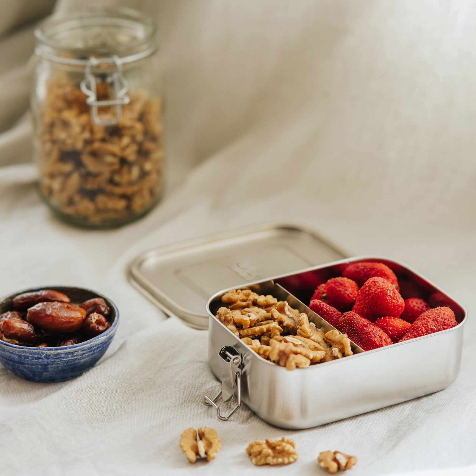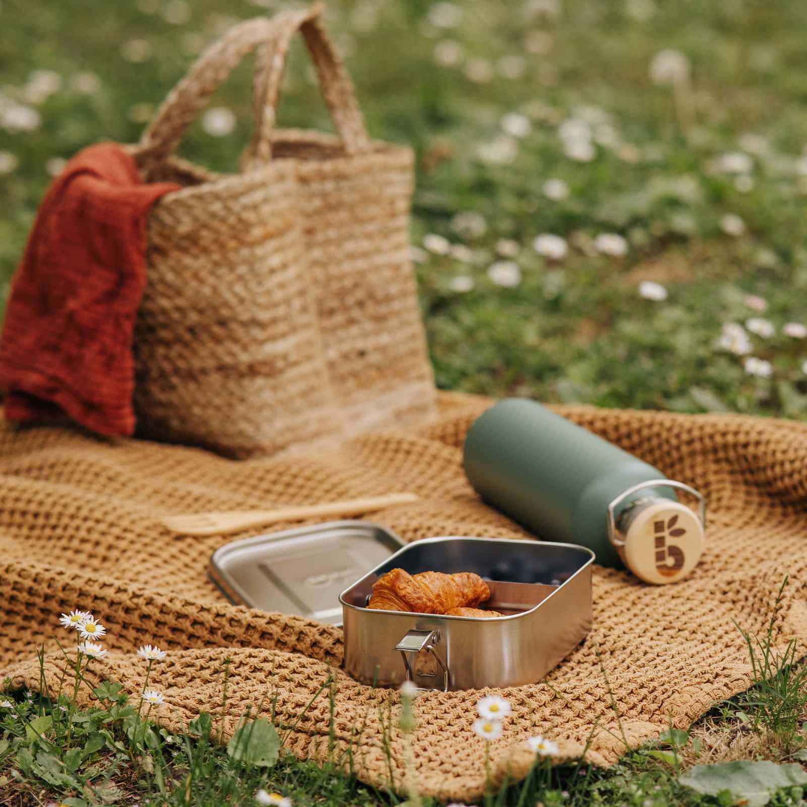 I really like this lunchbox from the Bambaw brand, and it is very well designed. In terms of design and materials, it reminds me a lot of old metal camping lunchboxes, as it is completely metallic. It’s very lightweight and appears to be very sturdy. The inner edge of the lid has a robust rubber seal that helps secure the closure when tightened.
